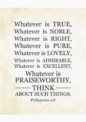 Finally, brothers, whatever is true, whatever is noble, whatever is right, whatever is pure, whatever is lovely, whatever is admirable–if anything is excellent or praiseworthy–think about such things” Philippians 4:8.